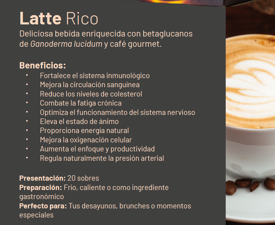 Deliciosa bebida enriquecida con betaglucanos de Ganoderma lucidum y café gourmet.